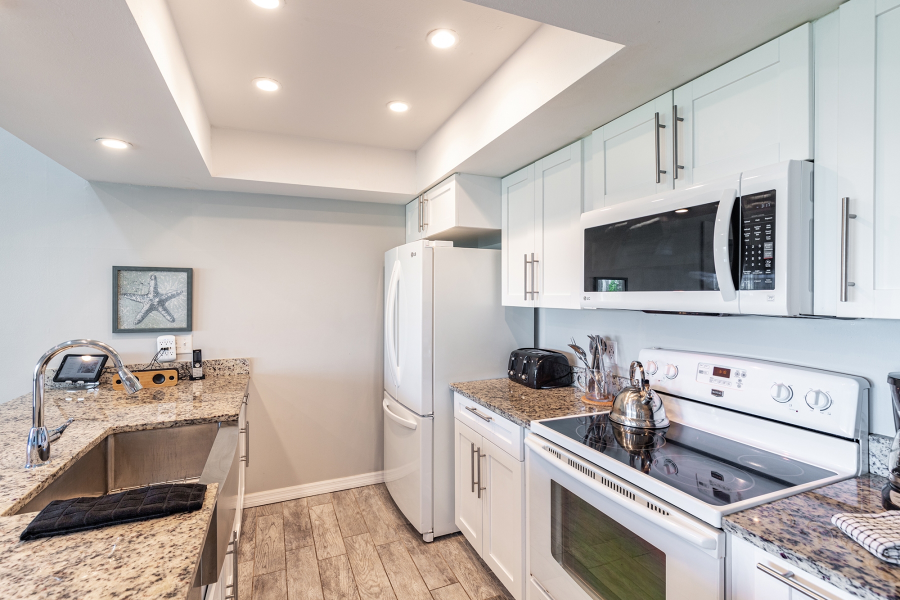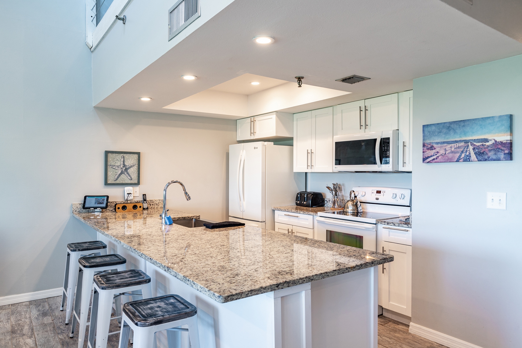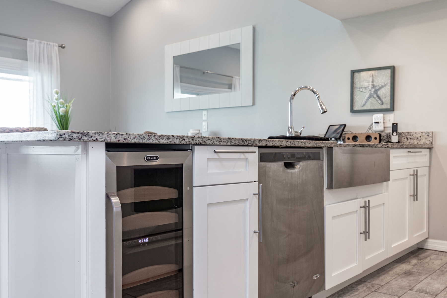 KITCHEN: Fully equipped, dishwasher, bar seating, drip coffee maker, stove/oven, refrigerator, wine cooler